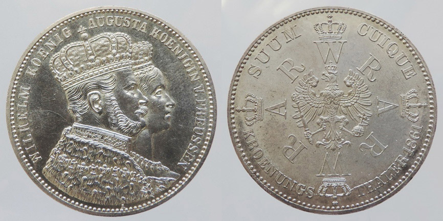 Wilhelm a Augusta, korunovační tolar 1861, nep.škr.
