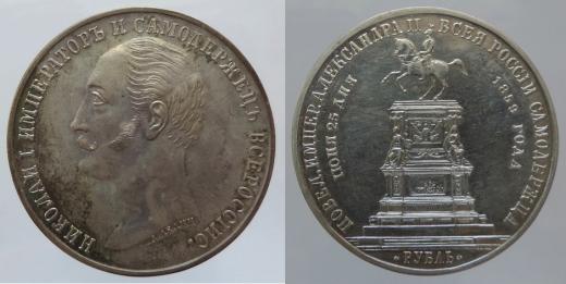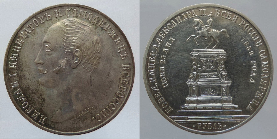 1 rubl 1859, k odhalení jezdeckého pomníku Mikoláše I., dr.škr. 20,756g R