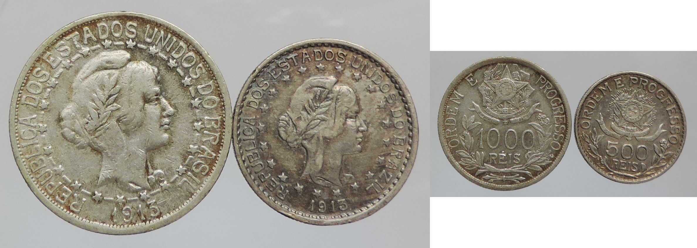 1000 Reis 1913 + 500 Reis 1913, Ag 900/1000 2ks
