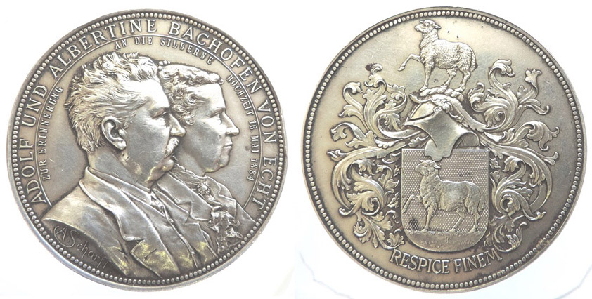 AR medaile 1884 na stříbrnou svatbu, sig. A.Scharff, 49mm/59,873g, patina, hr.