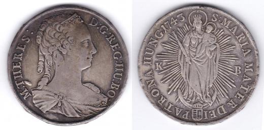 tolar 1743 KB, patina, stopy po vsazení, 28,518g