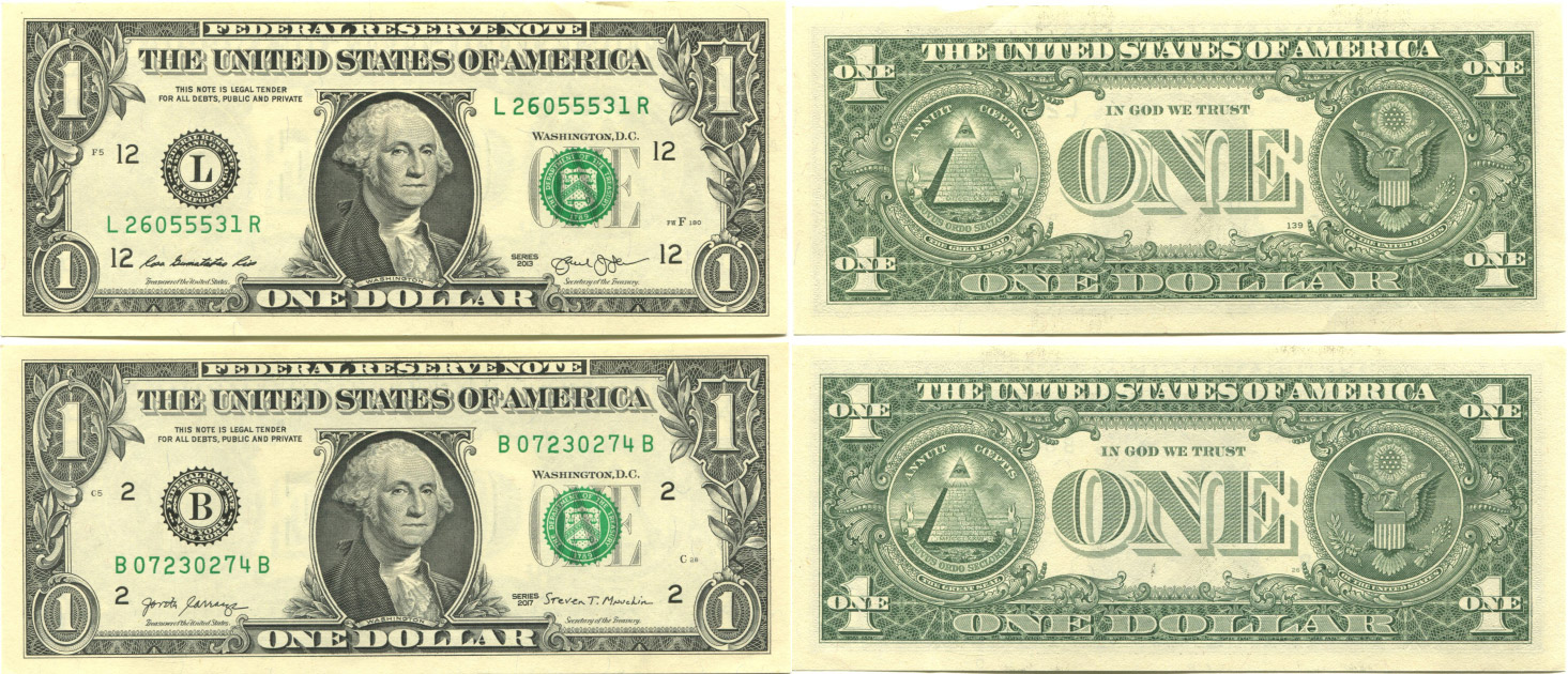 1 dollar 2013 L, 2017 B, 2 ks
