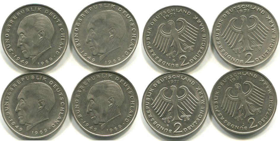 2 marka 1971 C, D, F, J, 4 ks
