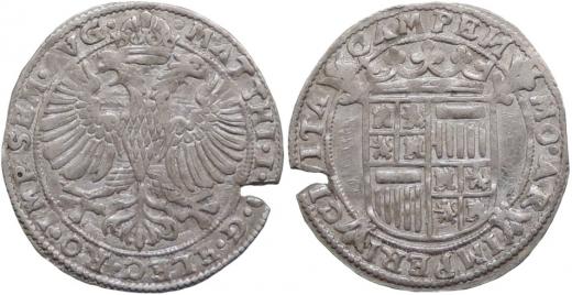 Nizozemí, Campen, Arendschilling b.l. s titl. Matyáše II., opis MATTHI, mírně napr.okr., jinak sbírkový