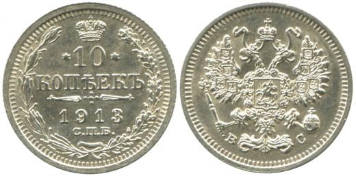 10 Kopějek 1913, SPB-VS, Petrohrad, Y.20a2