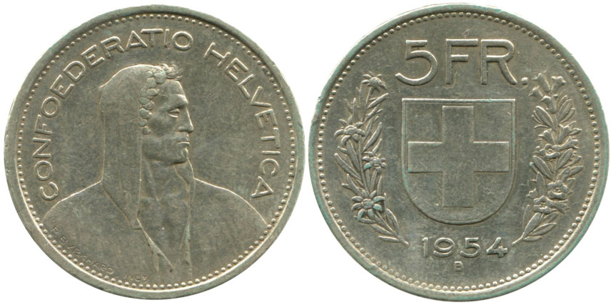 5 frank 1954 B, KM 40 (Ag835, 15g), dr.hr., nep.rysky
