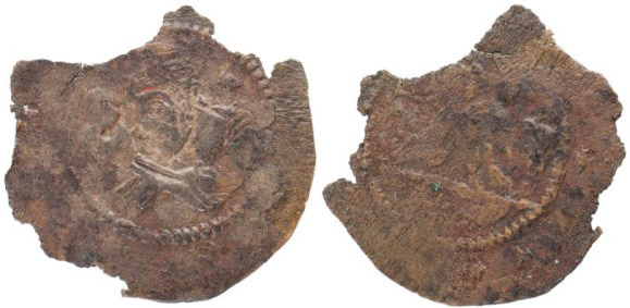 denár Cach 555, olámaný, Cu dobové falzum RR