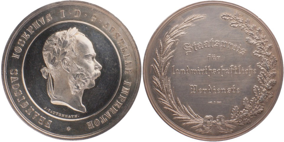 FJI, AR medaile "Náhrada státu za hospodářské zásluhy", portrét FJI/německý nápis ve věnci, 40mm/34,815g, sign. Tautenhayn