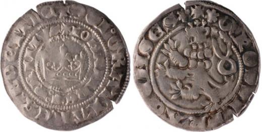 pražský groš Castelin 36var, dělící znaménko mezi GRATIA REX nevyryto, dr.napr.okr., 3,668g/28,7mm