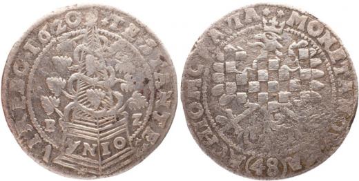 48 krejcar 1620 BZ Olomouc-Zwirner, MKČ 610 var., MORAVIA, nad orlicí dvě hvězdy, pórovitý střížek