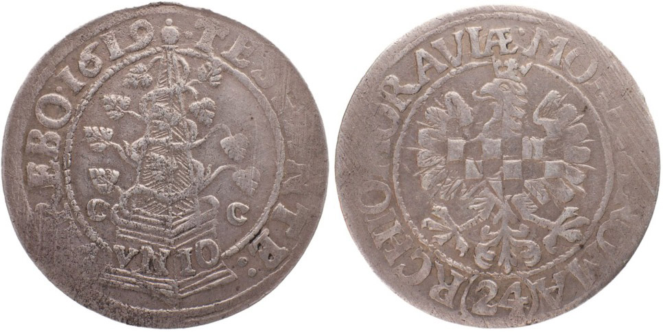24 krejcar 1619 CC Olomouc-Cantor, MKČ 616, dr.ned.