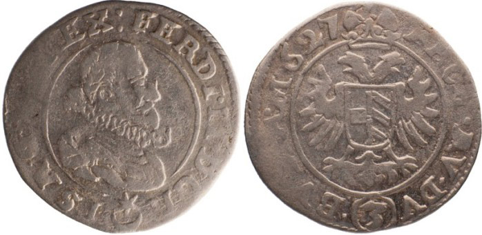 3 krejcar 1627 Praha-Hübmer, MKČ 760a