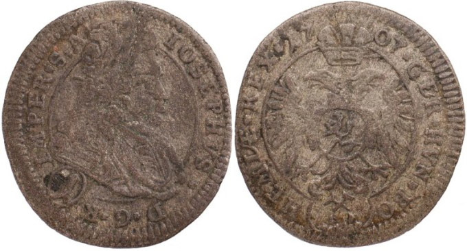1 krejcar 1707 Kutná Hora-Wohnsiedler, MKČ 1733, patina