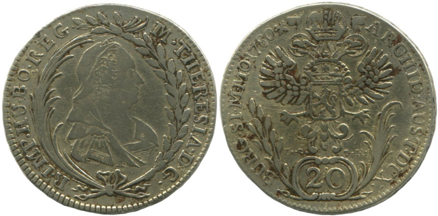 20 krejcar 1780 EvS-IK Praha, nep.škr.