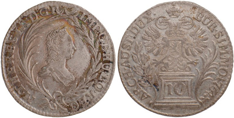 10 krejcar 1764 Praha-Erdmann, MKČ 1961, krásná patina