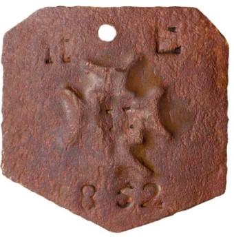 Fe robotní známka H-E (Herrschaft Eulenburg), č. 862 sedmihranná, řádový kříž, 43x43mm