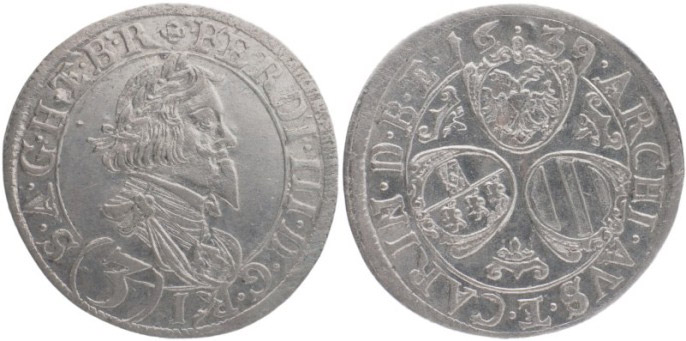 3 krejcar 1639 sv.Vít, vlas.škr.