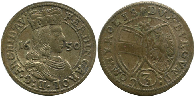 3 krejcar 1650 Hall, zc.nep.hr., patina