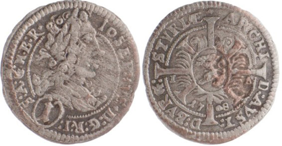 1 krejcar 1708 IA Graz-Aigmann, patina