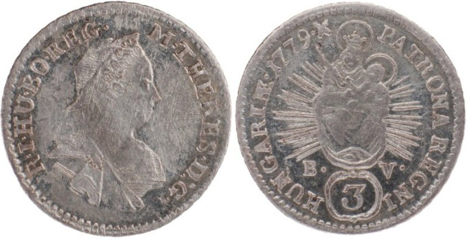 3 krejcar 1779 B.V. Nagybánya, nep.škr. R