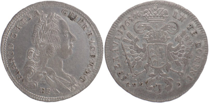 3 krejcar 1765 EvMD/BF posmrtný (1771) R
