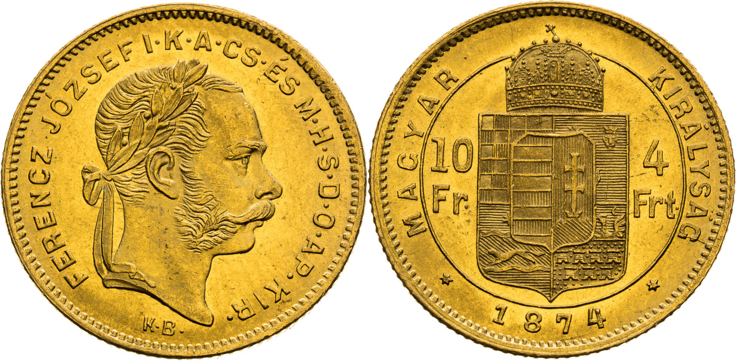 4 Zlatník 1874, Kremnica, 3,27 g, 19 mm, Au, Ex Rauch 70/2002 #2694, Frühwald 1747, Herinek 296, Friedberg 246, Novotný 123,