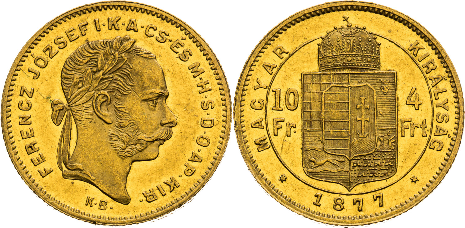4 Zlatník 1877, Kremnica, 3,27 g, 19 mm, Au, Ex Rauch 70/2002 #2697, Frühwald 1750, Herinek 299, Friedberg 246, Novotný 123,
