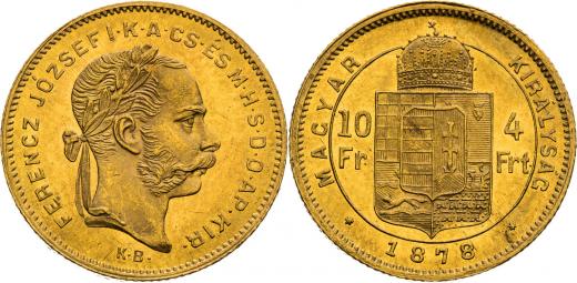 4 Zlatník 1878, Kremnica, 3,27 g, 19 mm, Au, Ex Rauch 70/2002 #2698, Frühwald 1751, Herinek 300, Friedberg 246, Novotný 123,