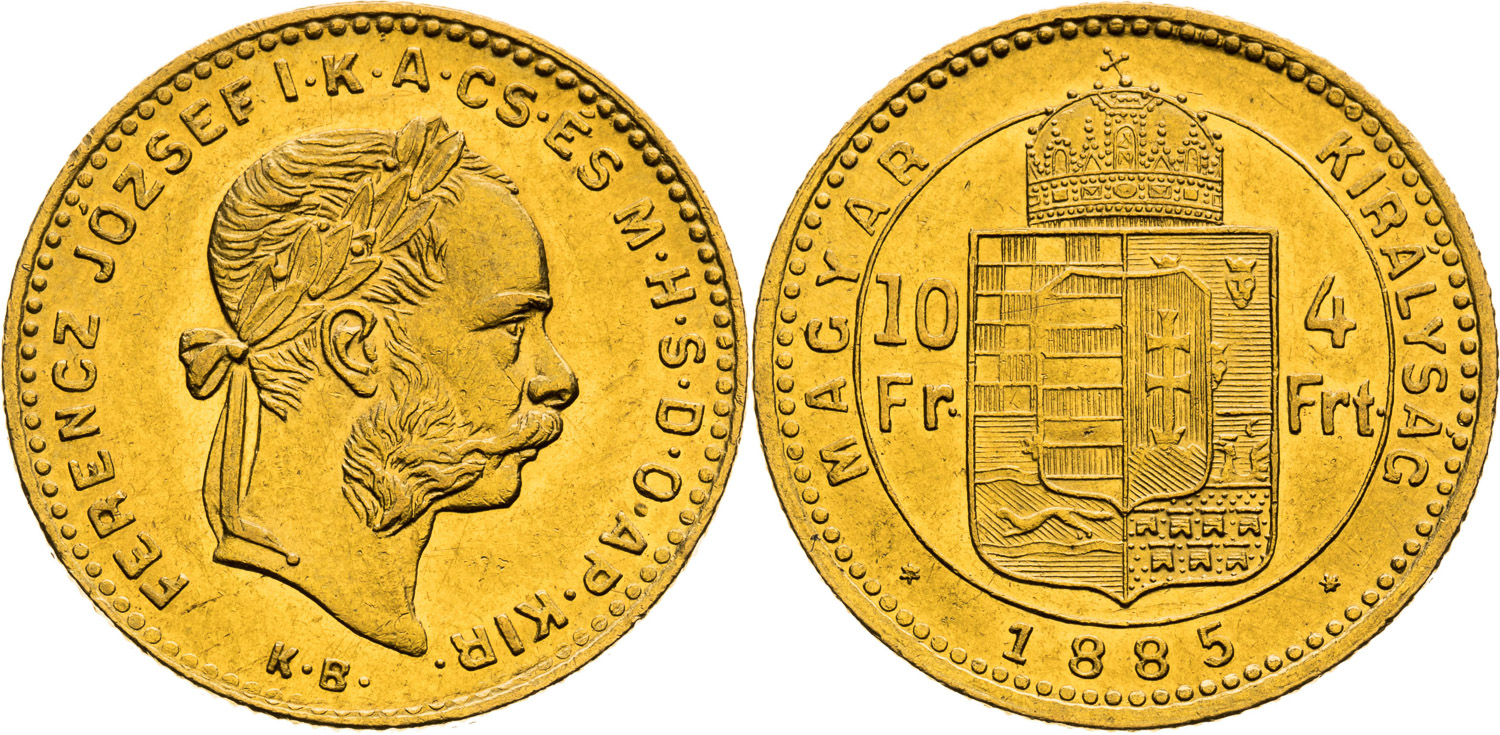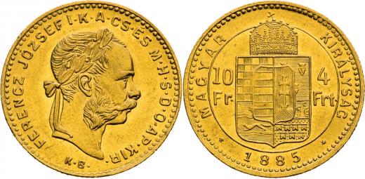 4 Zlatník 1885, Kremnica, 3,27 g, 19 mm, Au, Frühwald 1759, Herinek 308, Friedberg 247, Novotný 124,