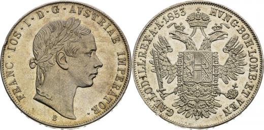 1/2 Tolar 1853, Konvenční Tolar, Kremnica, 12,99 g, 30 mm, Ag, RRR! Extrémně vzácný!, Ex Rauch 46/1991 #3245, Ex Nudelman 3/2007 #1463, Ex Rauch 93/2013 #3224, Frühwald 1438, Herinek 440, Novotný 38, Valovič 10,