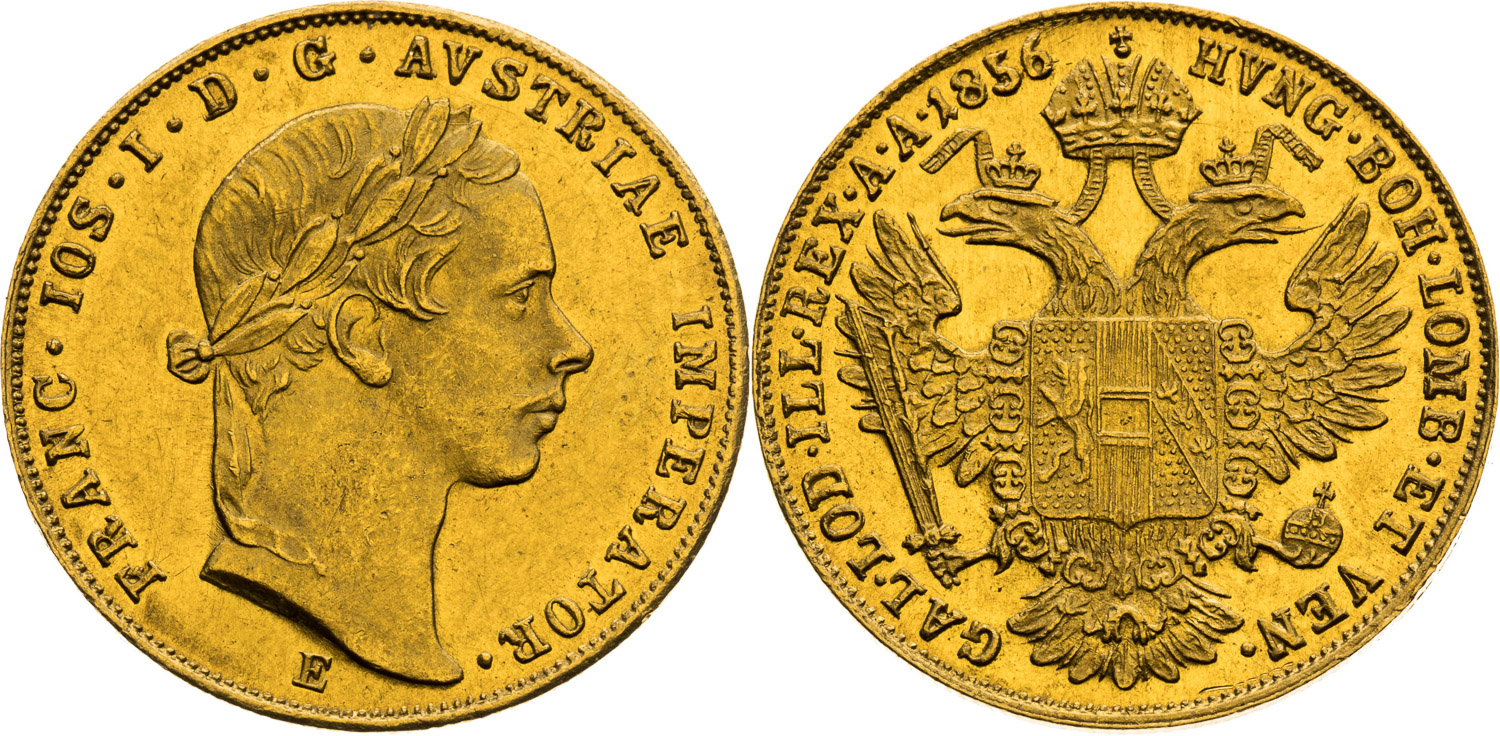 Dukát 1856, Karlovský Belehrad, 3,49 g, 20 mm, Au, Ex Frühwald 94/2011 #1332, Frühwald 1180, Herinek 93, Friedberg 233, Novotný 106,