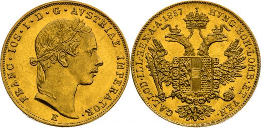 Dukát 1857, Karlovský Belehrad, 3,49 g, 20 mm, Au, Ex Collection Hackenschmied by Meissner & Neumann 5/2006 #55, Frühwald 1184, Herinek 94, Friedberg 233, Novotný 106,