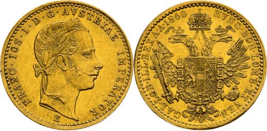 Dukát 1860, Karlovský Belehrad, 3,49 g, 20 mm, Au, Frühwald 1197, Herinek 117, Friedberg 235, Novotný 107,