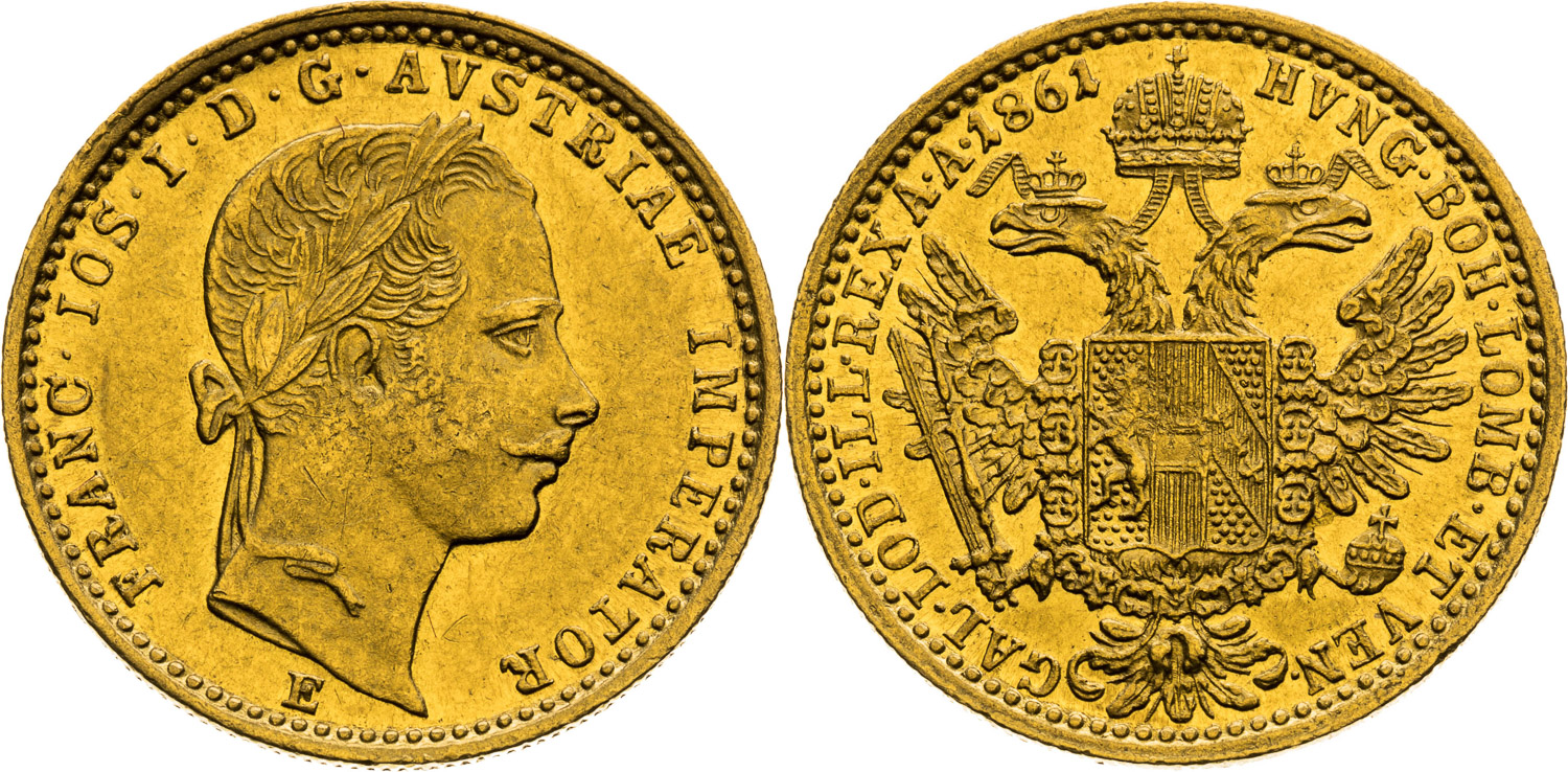 Dukát 1861, Karlovský Belehrad, 3,49 g, 20 mm, Au, Frühwald 1201, Herinek 118, Friedberg 235, Novotný 107,