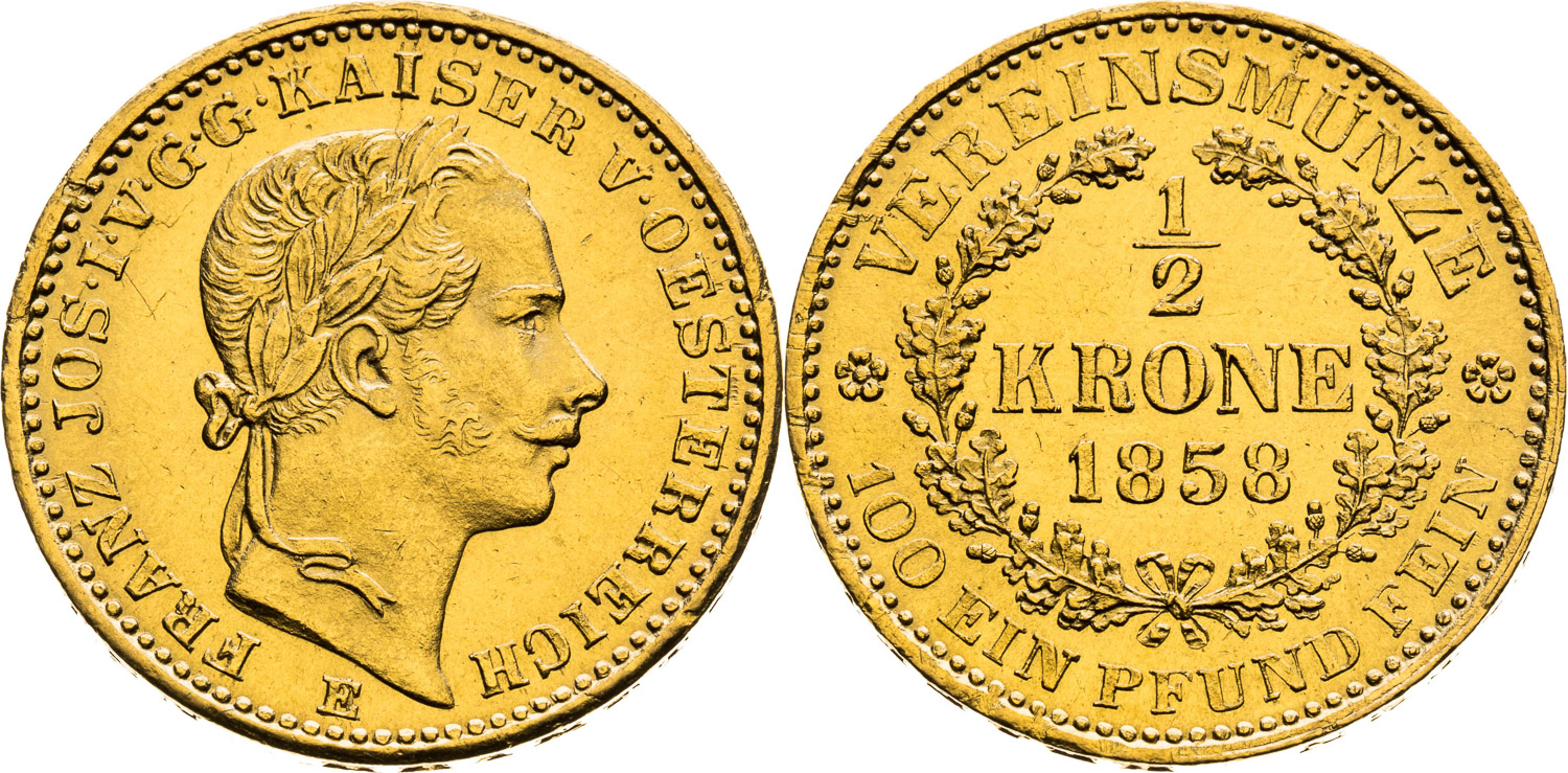 Spolková 1/2 koruna 1858, Karlovský Belehrad, 5,55 g, 20 mm, Au, R! Vzácný!, Frühwald 1290, Herinek 221c, Friedberg 231,Valovič 122, Novotný 118,