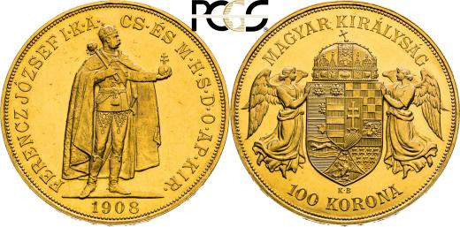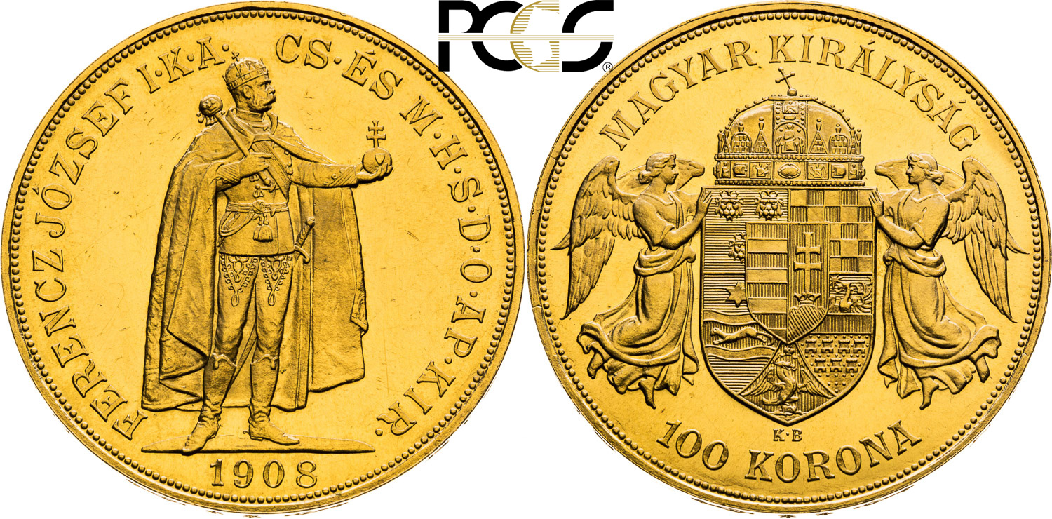 100 Korona 1908, Kremnica, 33,88 g, 37 mm, Au, R! Vzácný!, Frühwald 2055, Huszár 2197, Herinek 326, Novotný 141, Friedberg 249,