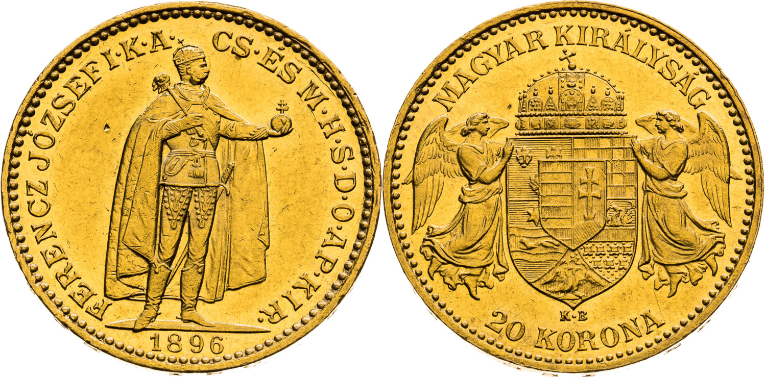 20 Korona 1896, Kremnica, 6,78 g, 21 mm, Au, Frühwald 2060, Herinek 357, Novotný 138, Friedberg 250,