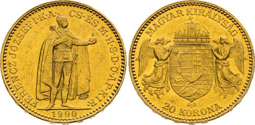 20 Korona 1900, Kremnica, 6,78 g, 21 mm, Frühwald 2064, Herinek 361, Novotný 138, Friedberg 250,
