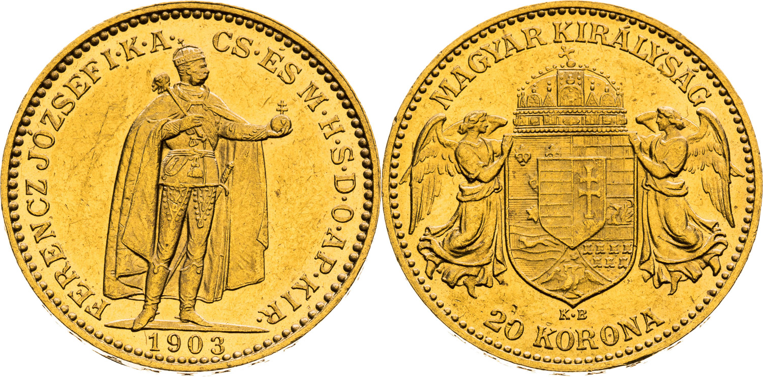 20 Korona 1903, Kremnica, 6,78 g, 21 mm, Au, Frühwald 2067, Herinek 364, Novotný 138, Friedberg 250,