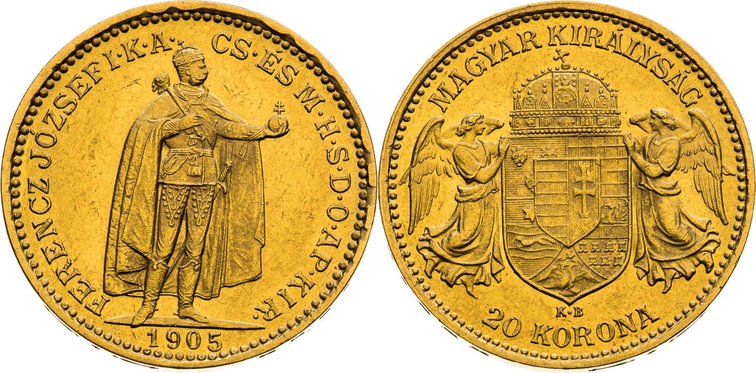 20 Korona 1905, Kremnica, 6,78 g, 21 mm, Au, Frühwald 2069, Herinek 366, Novotný 138, Friedberg 250,