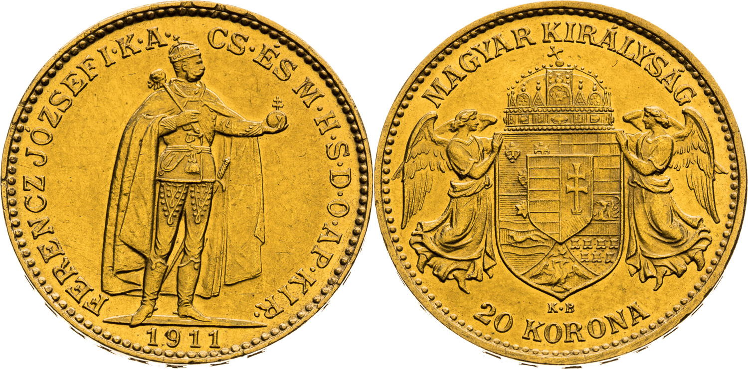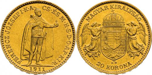 20 Korona 1911, Kremnica, 6,78 g, 21 mm, Au, Frühwald 2075, Herinek 372, Novotný 138, Friedberg 250,