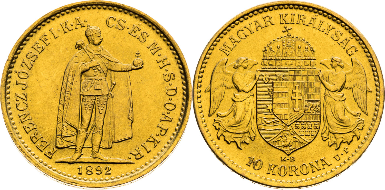 10 Korona 1892, Kremnica, 3,387 g, 19 mm, Au, Huszár 2200a, Friedberg 252R, Adamo K8, Moravec 157b,