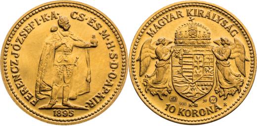 10 Korona 1895 (Novoražba), Kremnica, 3,387 g, 19 mm, Au, Frühwald -, Herinek -, Novotný -, Friedberg -,