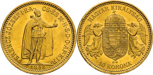 10 Korona 1896, Kremnica, 3,387 g, 19 mm, Au, Frühwald 2086, Herinek 396, Novotný 133, Friedberg 252,