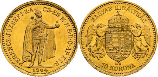 10 Korona 1904, Kremnica, 3,387 g, 19 mm, Au, Frühwald 2094, Herinek 404, Novotný 133, Friedberg 252,