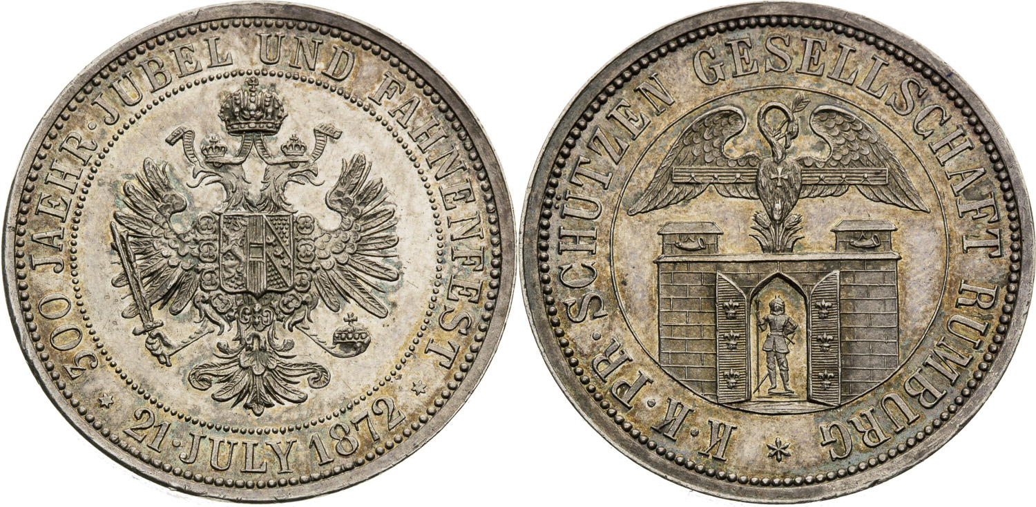 Stříbrná medaile 1872 (Zlatník), Střelecká soutěž Rumburk - 300. výročí spolku, Viedeň, 12,93 g, 29,3 mm, Ag, R! Vzácný!, Horsky 6929, Peltzer 1905, Hauser 5080 ,