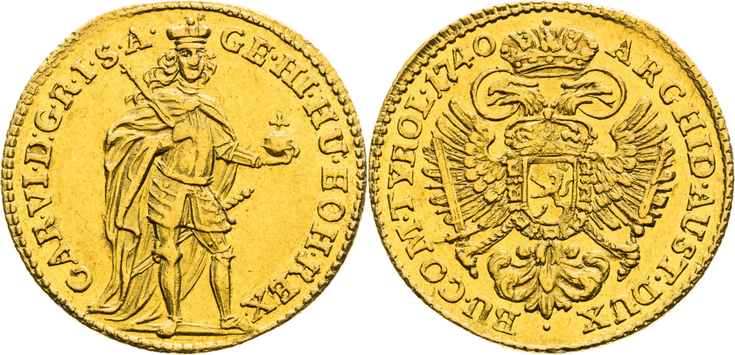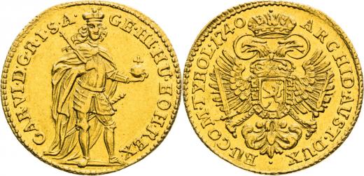 Karel VI. Dukát 1740, Praha, Ferdinand Scharff, 3,48 g, 21,32 mm, Au, R! Vzácný!, Halačka 1788, Herinek 112, Novotný 74, Dietiker 1031, Friedberg 47c.,