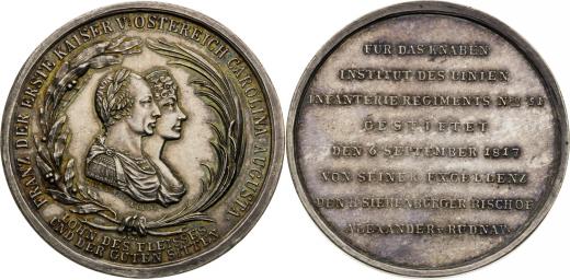 František I. Stříbrná medaile 1817, Věnováno sedmihradskému biskupovi Alexandru Rudnayovi, Viedeň, Karl Wurschbauer, 19,13 g, 43,02 mm, Ag, RR! Velmi vzácná!, Huszár-Procopius 509, Resch 240, T. 77, Ražební lesk v plochách!