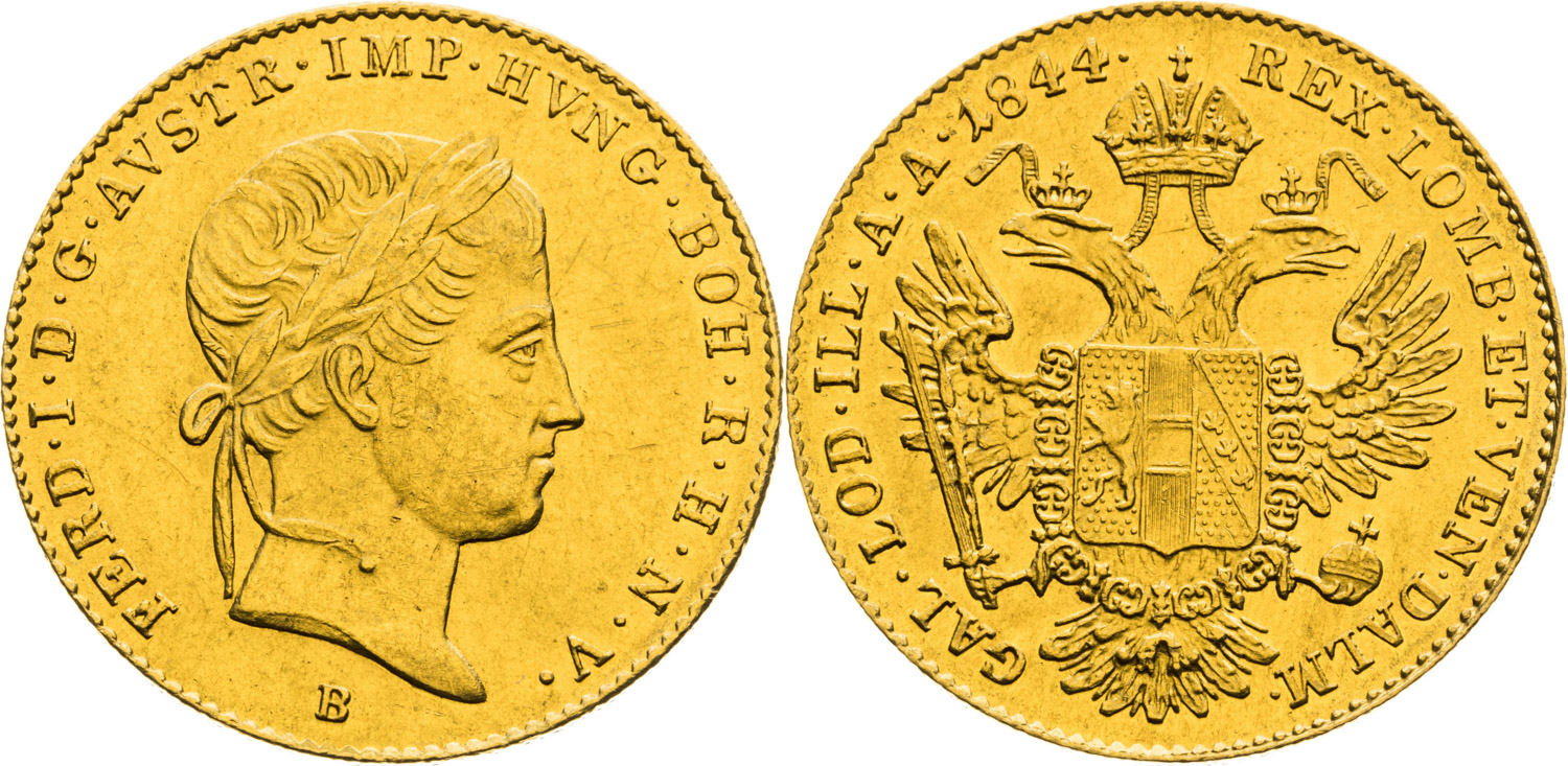 Ferdinand V. Dukát 1844, Kremnica, 3,5 g, 20,30 mm, Au, Frühwald 738, Huszár 2077, Friedberg 225, Herinek 38,