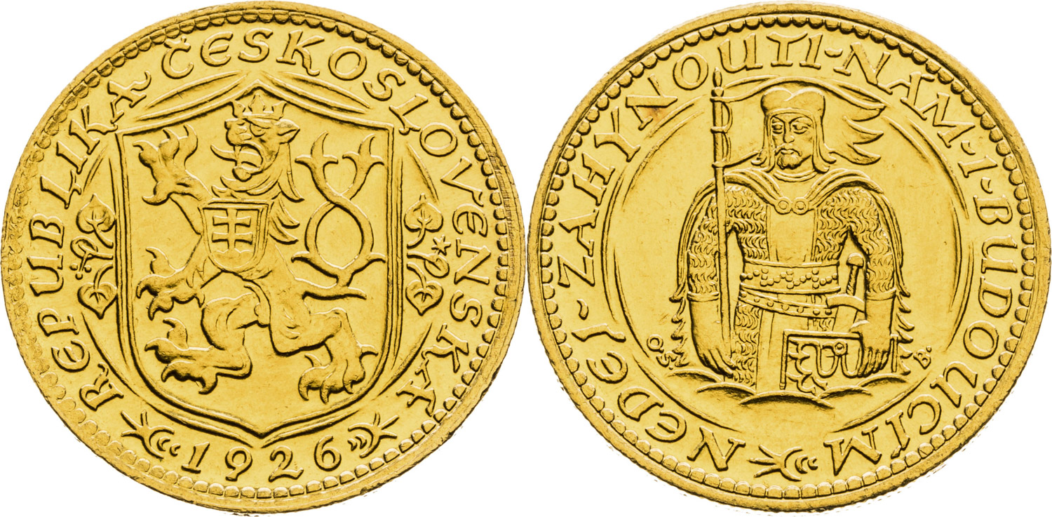 ČSR (1918-1939) Dukát 1926, Kremnica, J. Benda, O. Španiel, 3,49 g, 19,75 mm, Au, M&CH CSR1D-005, Valovič CSD2, Novotný 16, Raženo 58 669 ks.